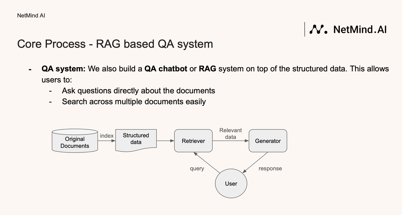 Powered by the latest version of our NetMind ParsePro MCP tool, our team designed a Document Intelligence platform for our client.